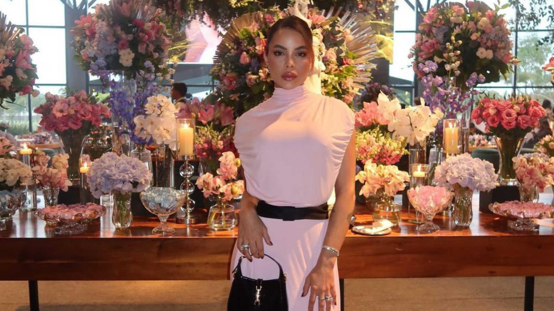 Elaine Borges inspira elegância em evento especial com look que une arte e romantismo